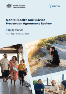 On 11 November, the Productivity Commission’s final report on the Mental Health and Suicide Prevention Agreement Review was tabled in Parliament.