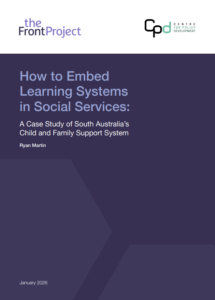 A new report from the Centre for Policy Development – How to embed learning systems in social services: A case study of South Australia’s Child and Family Support System – offers practical lessons for policymakers on how to embed continuous learning into the design and delivery of social services, drawing on the success of South Australia’s Child and Family Support System (CFSS). The report was developed in partnership with The Front Project